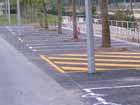 Marquage au sol des emplacements de parking.