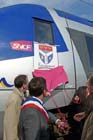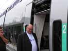 Le conducteur de la rame, Thierry ROULOT est salué par M. KERHARO, Maire de BAZANCOURT. |