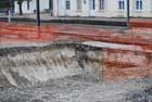 Le remblai du tunnel est presque terminé en attendant la réalisation de la montée d'escalier. |