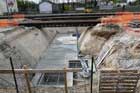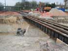 Détail des rails provisoires permettant la poursuite du trafic. |